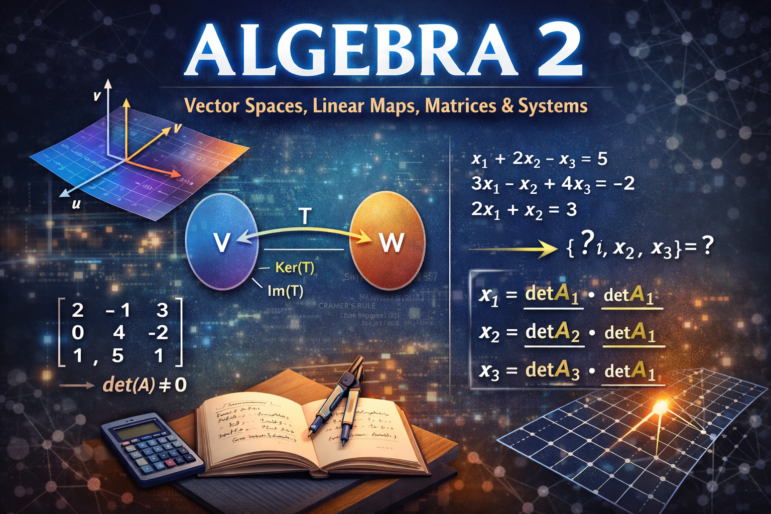 This course introduces the core structures of linear algebra and develops the theoretical and computational tools used throughout mathematics, computer science, and applied sciences.