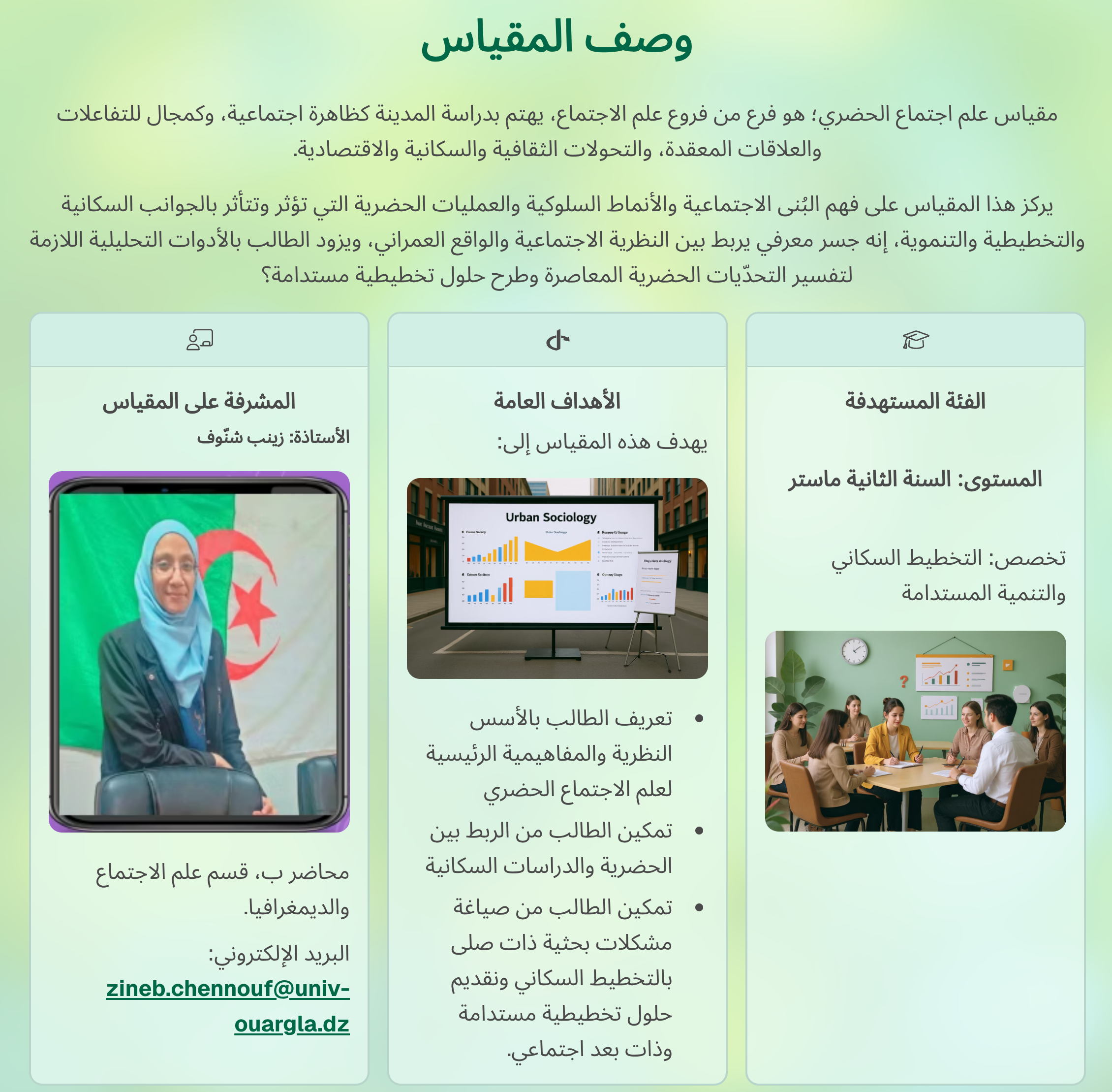 1- تعريف الطالب بالأسس النظرية والمفاهيمية الرئيسية لعلم الاجتماع الحضري