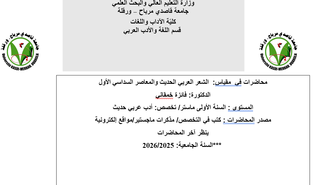 Miscellaneous / Hbilitation Universitaire et Professorat / Faculty of Letters, Languages and Arts / Department of Arabic Language and Literature