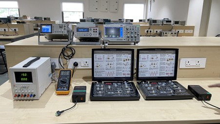 The Lab Works of Digital Communications module provides students with practical experience in digital data transmission over wired and wireless channels. Through simulations and hands-on experiments, students study the principles of baseband transmission and implement various line coding techniques, including NRZ-L, NRZ-M, NRZ-S, and BiØ-L. Using dedicated experimental kits, they also perform and analyze different digital modulation schemes such as ASK, FSK, and PSK. The module enables students to encode, decode, and evaluate signal performance, strengthening the connection between theoretical concepts and real-world digital communication systems.