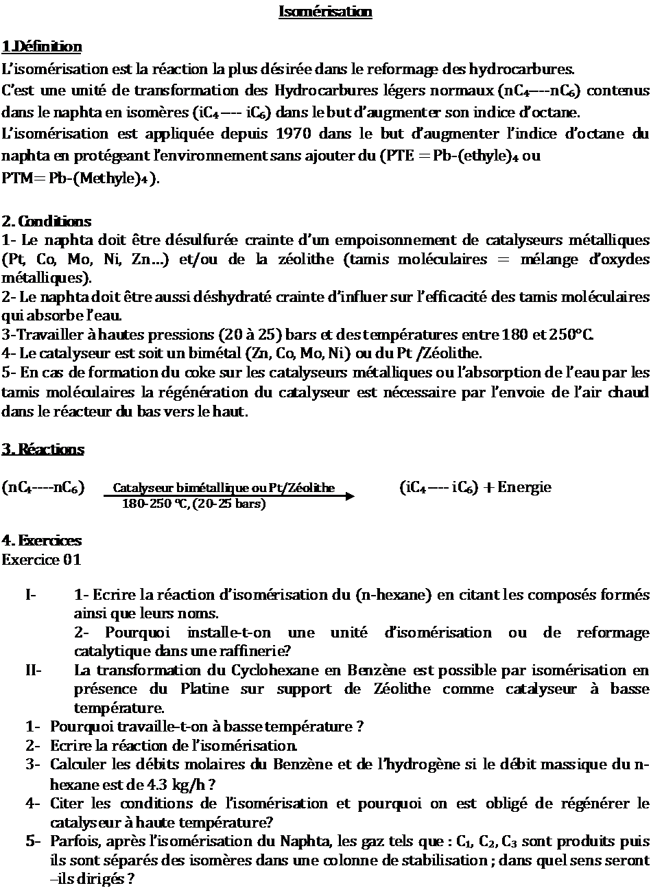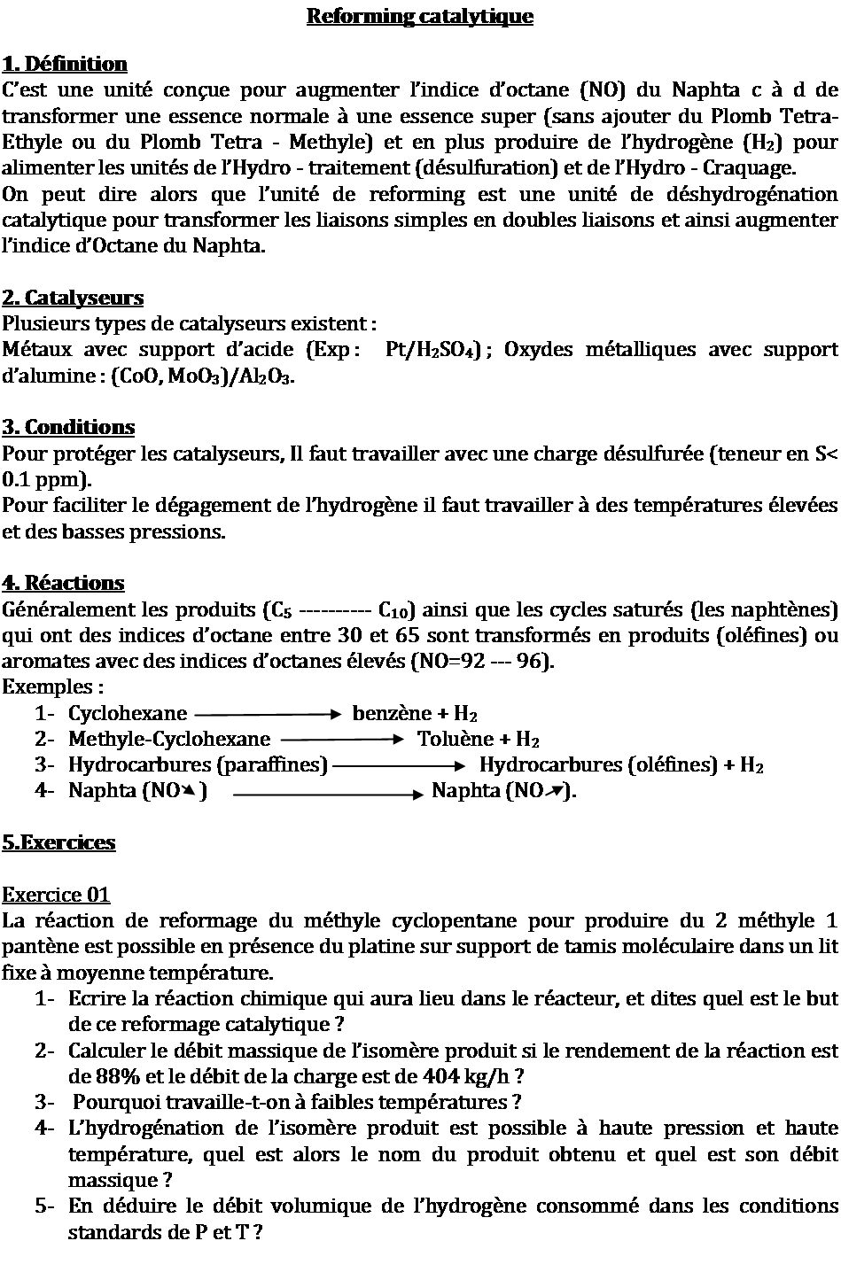 II- Lors de la déshydrogénation du méthyle cyclohexane par craquage catalytique en présence du Platine, le méthyle cyclohexane se transforme en toluène.
