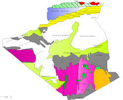 Algeria is a geologically diverse country shaped by millions of years of tectonic evolution. In the north, the Tellian and Saharan Atlas mountain chains were formed during the Alpine orogeny and consist mainly of folded Mesozoic and Cenozoic sedimentary rocks. They are separated by the High Plateaus, a broad region of uplifted sedimentary terrains. To the south lies the stable Saharan Platform, composed of Precambrian basement rocks covered by thick Paleozoic and Mesozoic sedimentary sequences that host major hydrocarbon basins. Further south, the ancient Hoggar Massif, made of Precambrian igneous and metamorphic rocks, represents one of the oldest geological provinces in Africa. This varied geology explains Algeria’s rich mineral, groundwater, and petroleum resources.