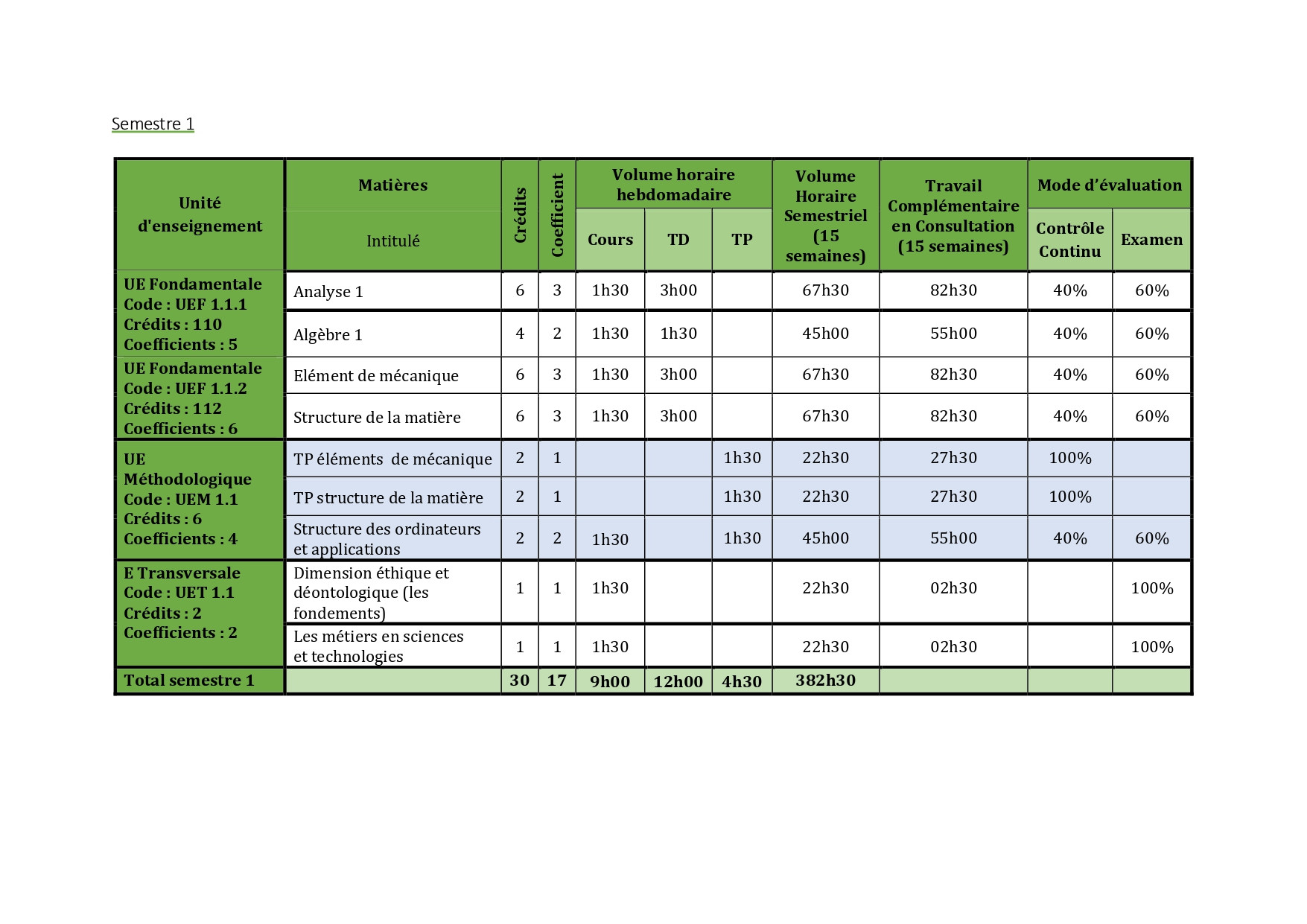 Faculty of mathematics and science of matter- FMSM - / SM-Common core courses / 1ère Année (L1) / Semestre 1