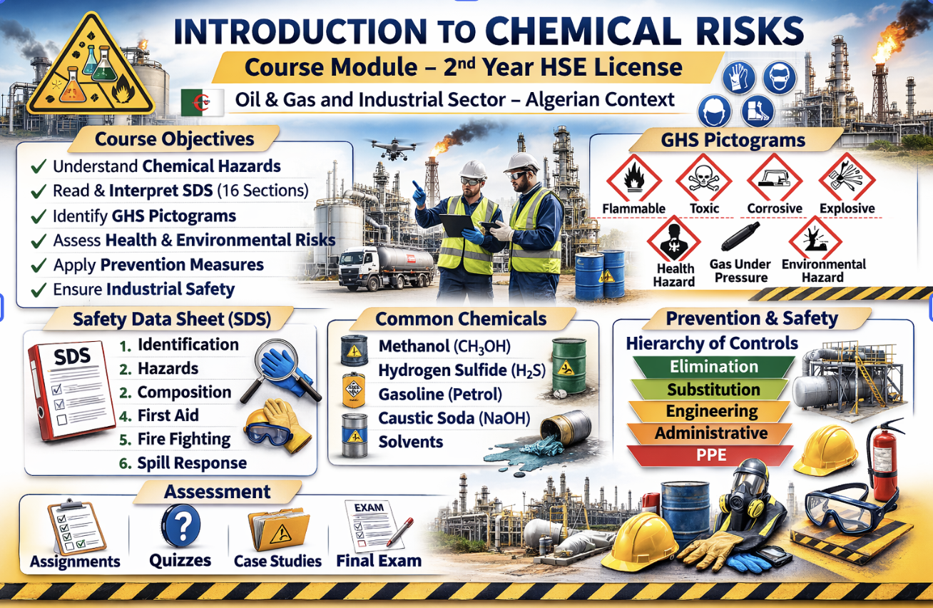 The course is adapted to the real conditions of Algerian industrial sectors, especially oil & gas facilities, storage terminals, and maintenance operations.