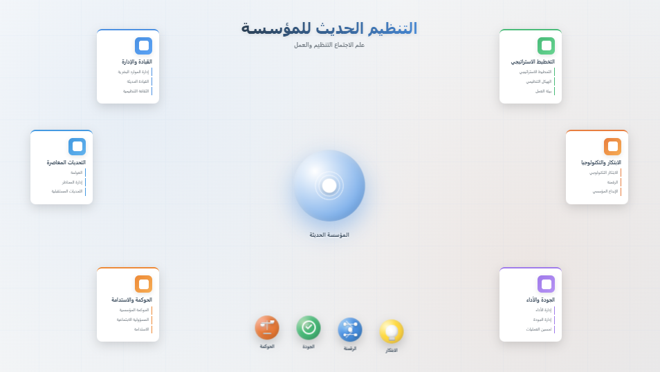 تمكين الطالب من فهم المؤسسة الحديثة بوصفها تنظيماً اجتماعياً واقتصادياً معقداً، وتحليل بنيتها ووظائفها في سياق تحولات العمل المعاصر.