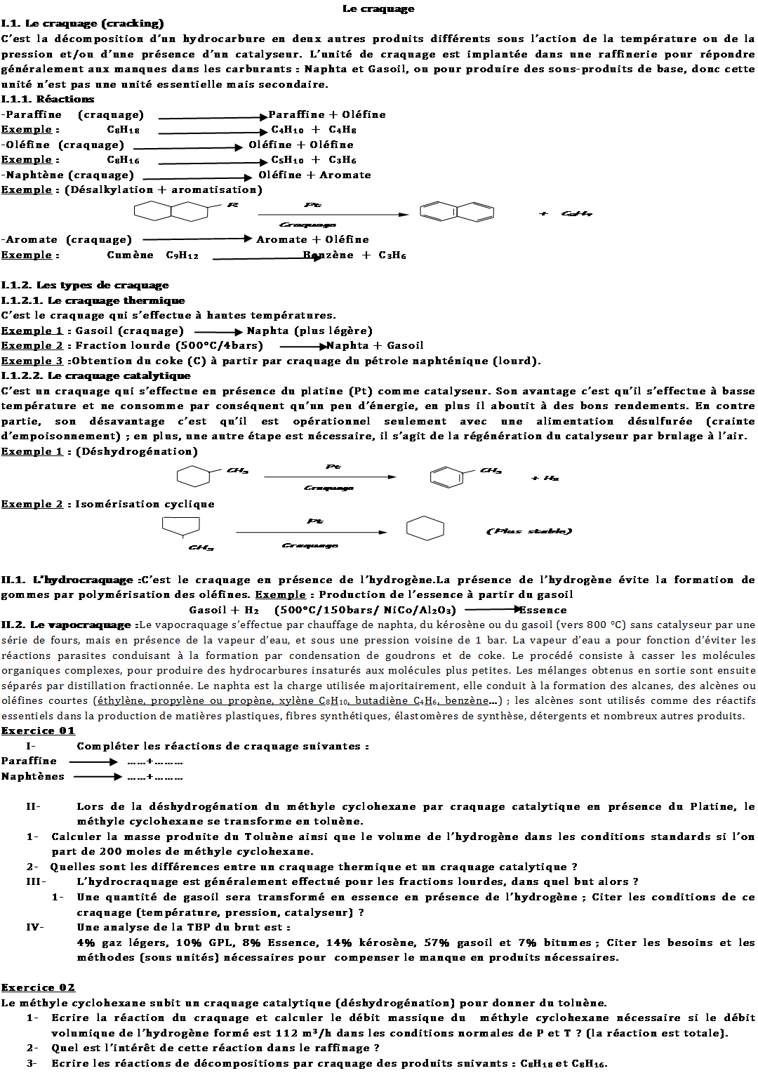 C’est un traitement limité pour les fractions légères (G.P.L ; Naphta ;…) car pour les radicaux : atomes de carbone, les réactions deviennent difficiles.
