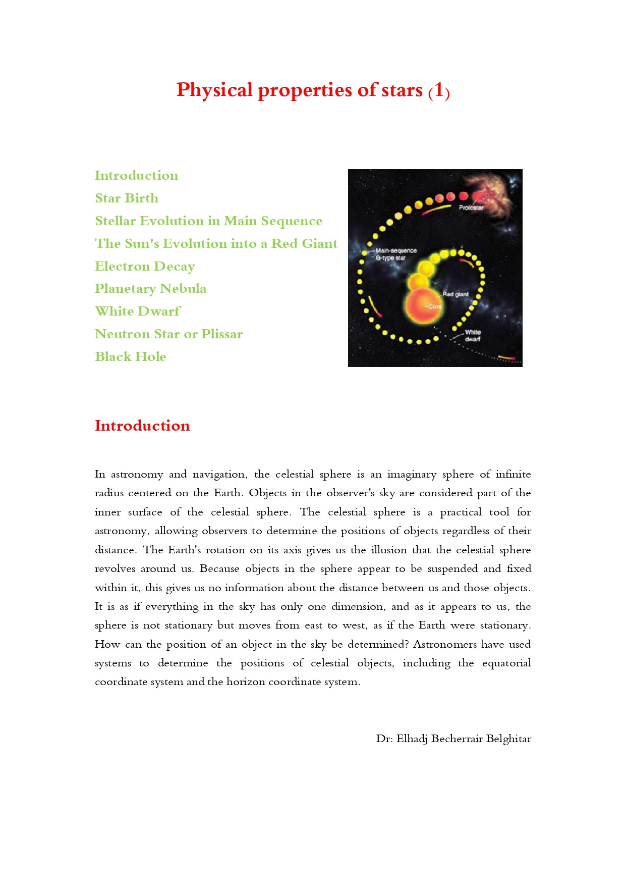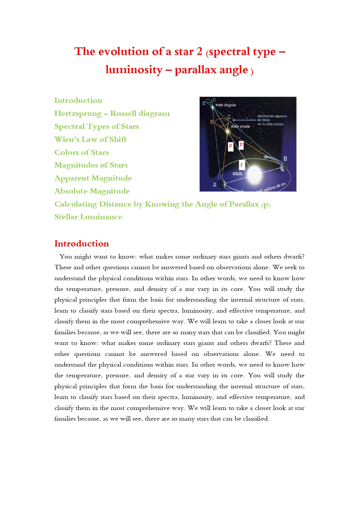The evolution of a star 2 (spectral type – luminosity – parallax angle(