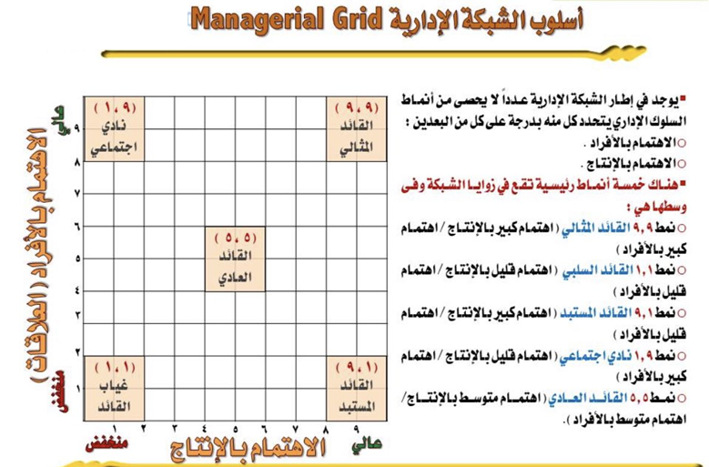 ومن أهم هذه النظريات: نظرية الشبكة الإدارية التي طورها بليك وموتون، والتي تعد من أكثر النظريات تأثيرًا في تطوير الفكر القيادي الحديث وفي دعم جهود التنمية الإدارية داخل المؤسسات.