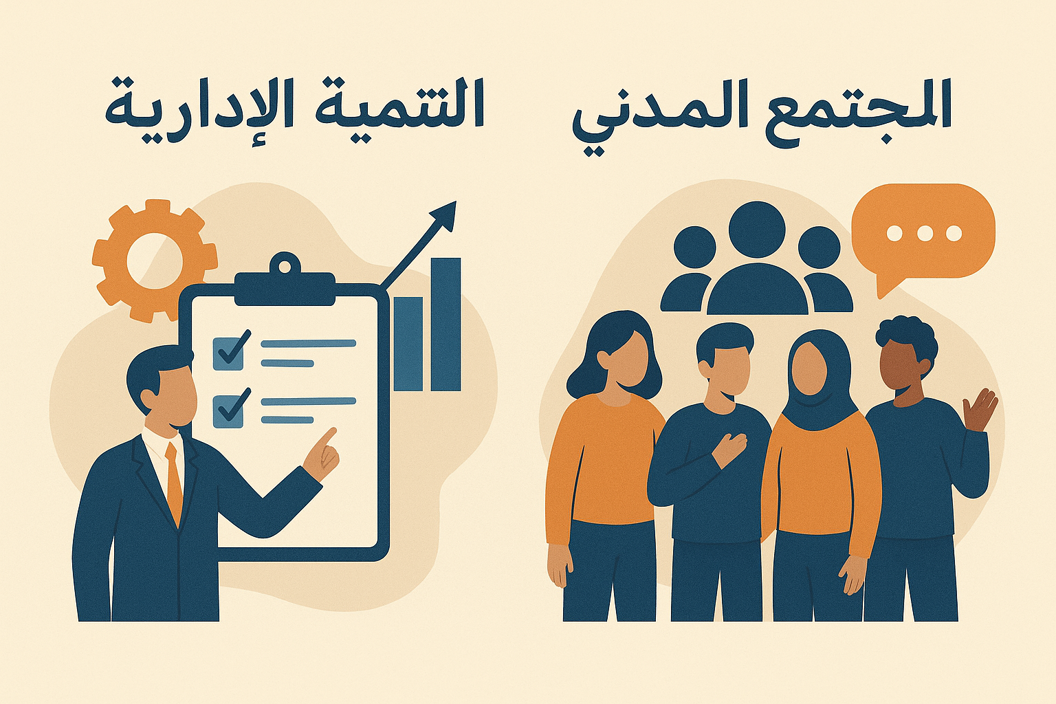كما يبرز دور المجتمع المدني كفاعل أساسي لدعم التنمية الإدارية، من خلال إشراكه في وضع السياسات، متابعة الأداء، وتفعيل البعد التشاركي بين الإدارة والمواطنين. فالمجتمع المدني يمثل جسرًا يربط بين السلطة العامة والمجتمع، ويسهم في تعزيز الثقة، وترسيخ قيم الشفافية والمساءلة، وتحسين جودة الخدمات العمومية.